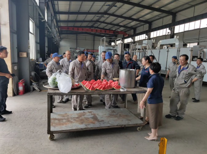 花生機(jī)械和堅(jiān)果炒貨設(shè)備近日,為進(jìn)一步做好暑期防暑降溫安全生產(chǎn)工作,公司工會(huì)以“情系一線職工”為主題,開展了“平安度夏送清涼”活動(dòng),為一線員工購(gòu)買了西瓜、冷飲,并準(zhǔn)備了綠豆湯。
